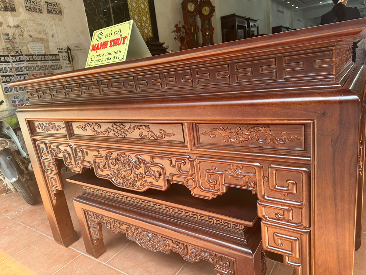 Bàn thờ gia tiên Gỗ hương đá Kích thước 197x97x127 chân 12 Bàn phụ kích thước 107x61x61 Giá cả bộ 17tr500