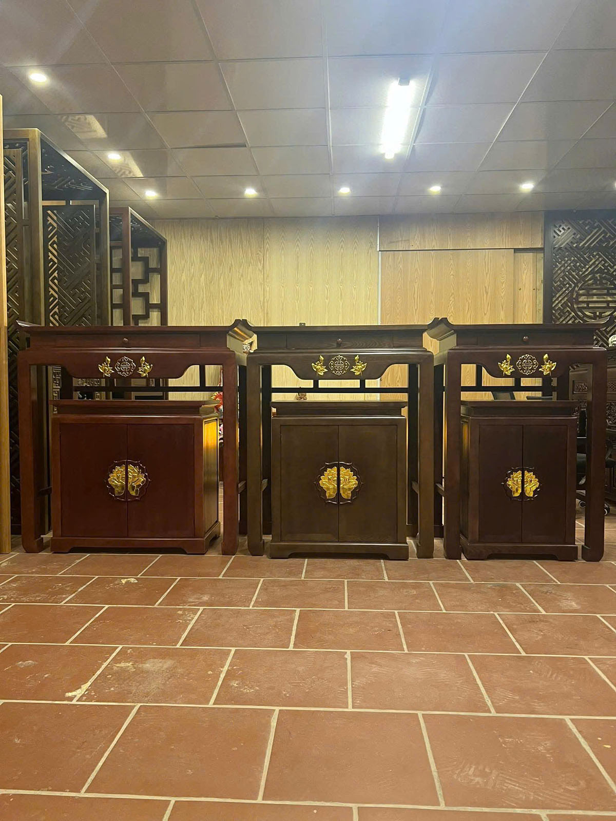 Bàn thờ gia tiên Chất liệu gỗ sồi Kích thước 127x61x127 Tủ phụ 107x61x127 Giá 7tr500 Giá 8tr thiếc vàng